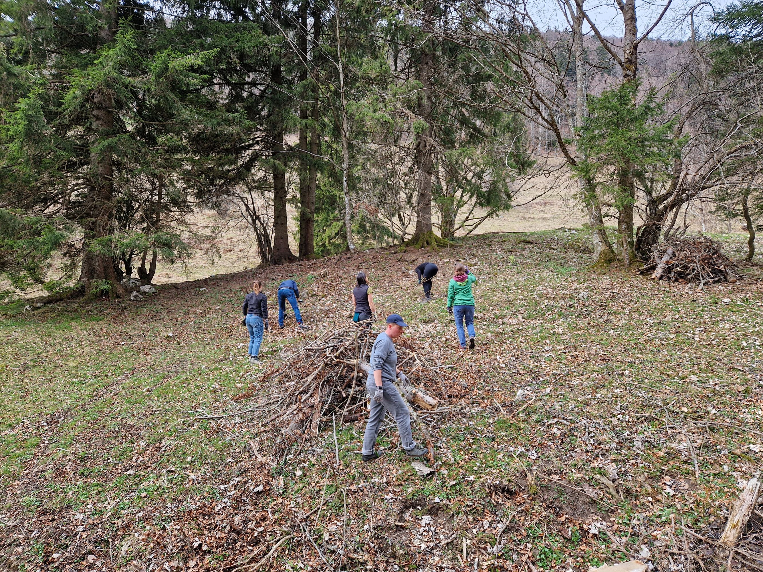 Unter der Anleitung von zwei Park-Mitarbeitenden sowie dem Forst Dünnerntal haben wir auf der Wytweide in der Chuematt gemeinsam Asthaufen geschichtet. Diese bieten einen wichtigen Beitrag für Säugetieren, Vögeln und Insekten und dienen als Unterschlupf und Lebensraum.